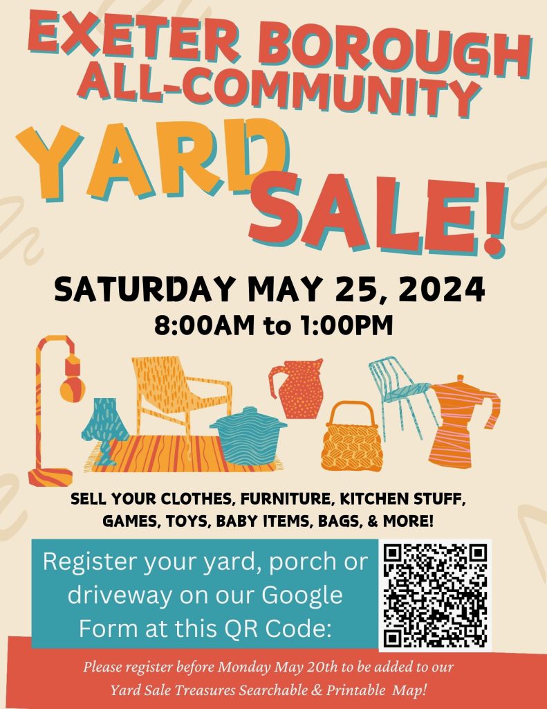 Exeter Borough All-Community YARD SALE! May 25, 2024